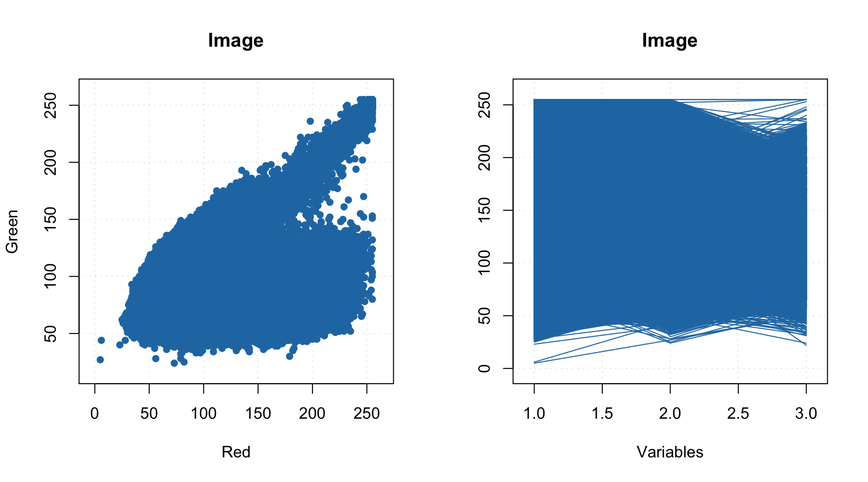 The package also supports images, including hyperspectral images, however they have to be transformed into datasets. The idea is very simple, we keep information about image pixels in an unfolded form, as a matrix, and use attributes width and height to reshape the data when we need to show it as an image.