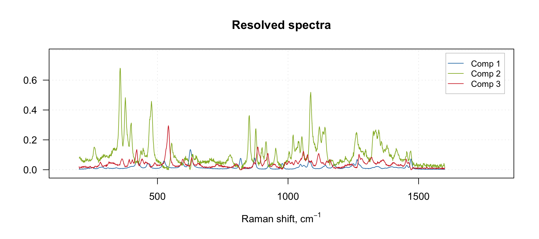 You may have noticed the following instruction: set.seed(6) in the code block above. This is needed to make results more reproducible. Since the initial estimates for the resolved spectra are obtained using random number generator, the final result can be different from run to run. To avoid this we seed the generator with number 6, so the final result will be the same regardless how many times we run this code.
